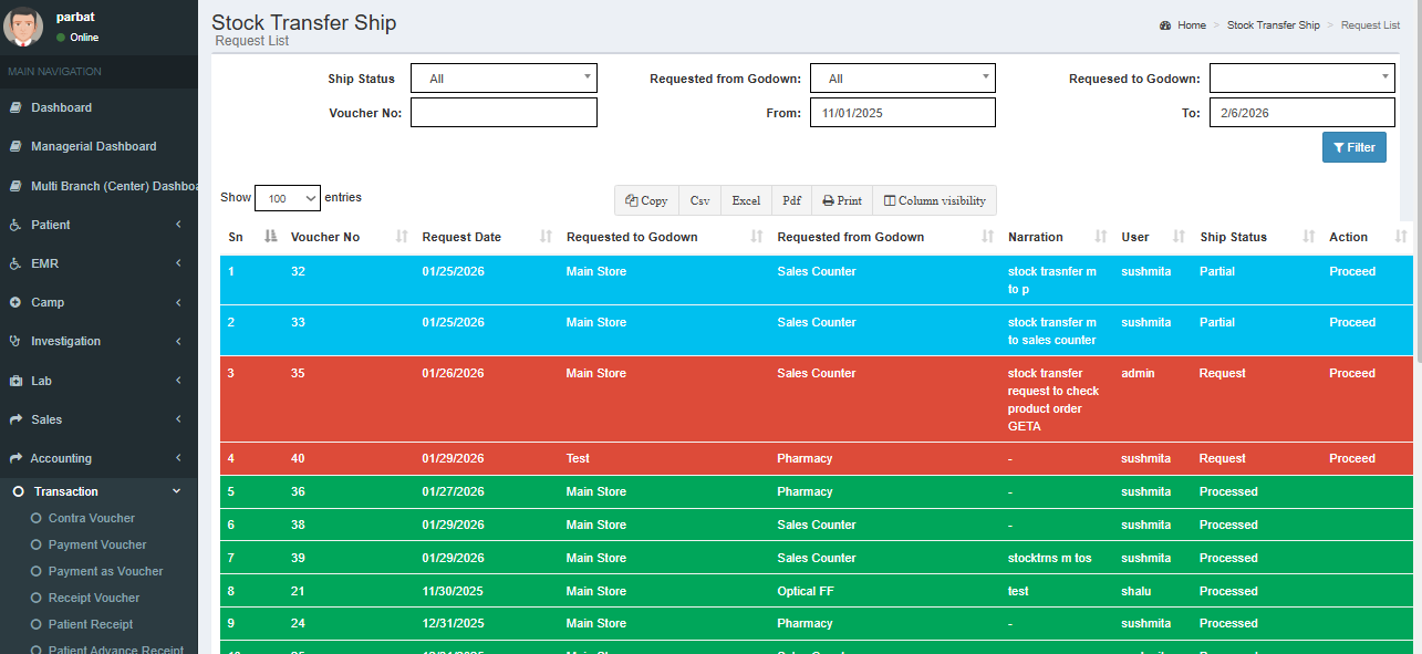 Multiple stores (main store, sub-stores, wards, departments)